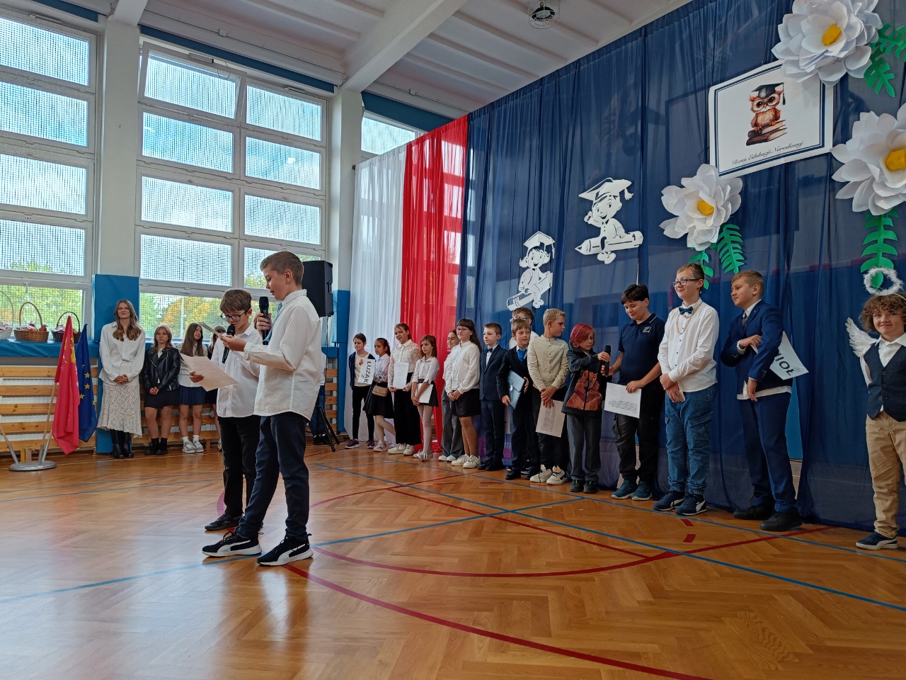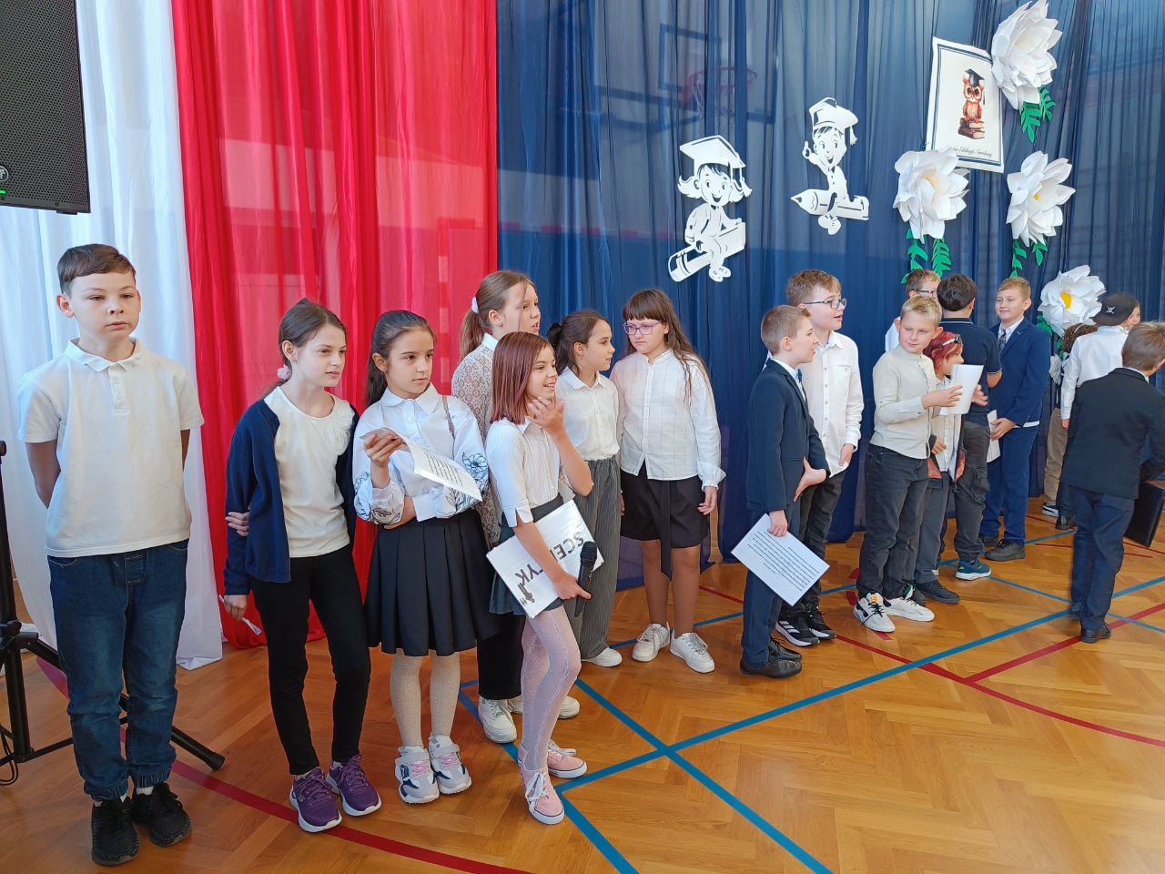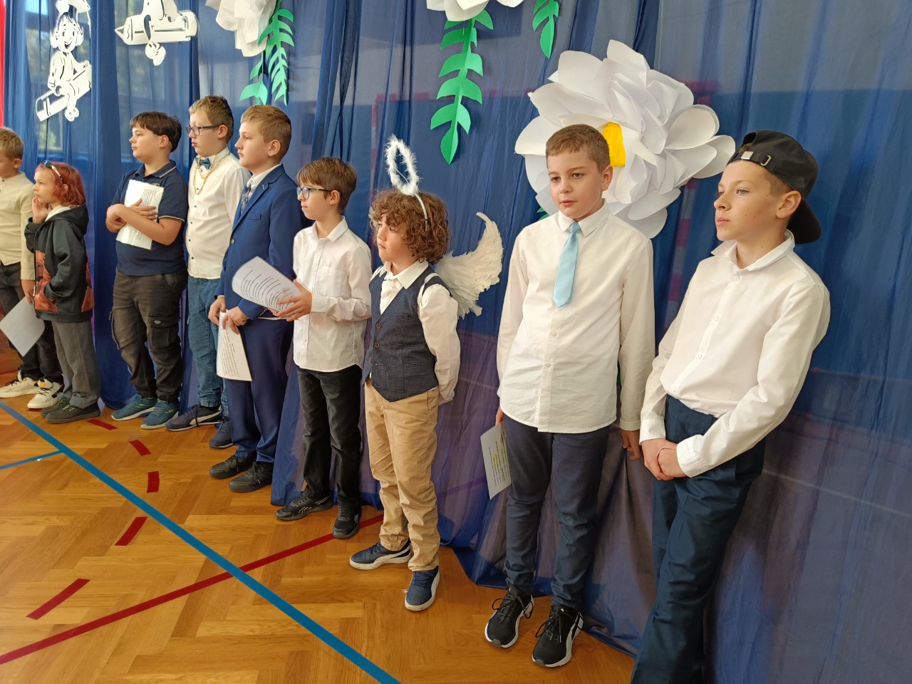 Przedstawienie dla klas młodszych przygotowali uczniowie klasy 2b pod opieką wychowawczyni, pani Karoliny Chrostowskiej.