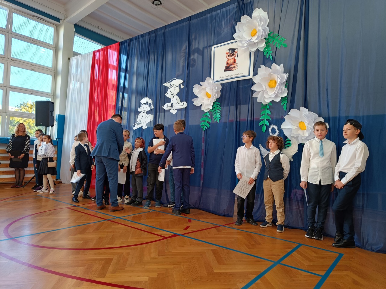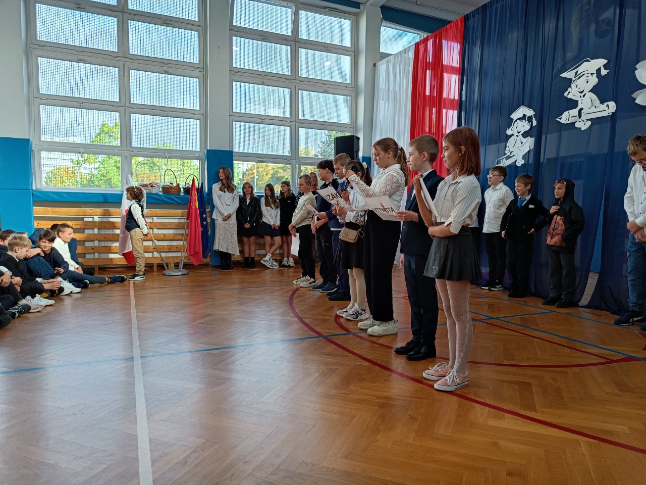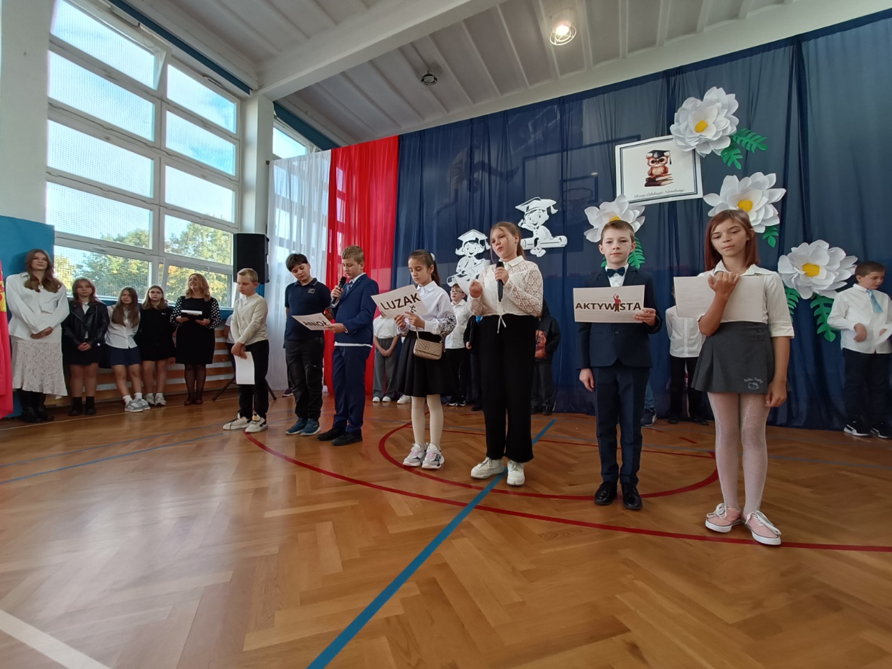 Przedstawienie dla klas młodszych przygotowali uczniowie klasy 2b pod opieką wychowawczyni, pani Karoliny Chrostowskiej.