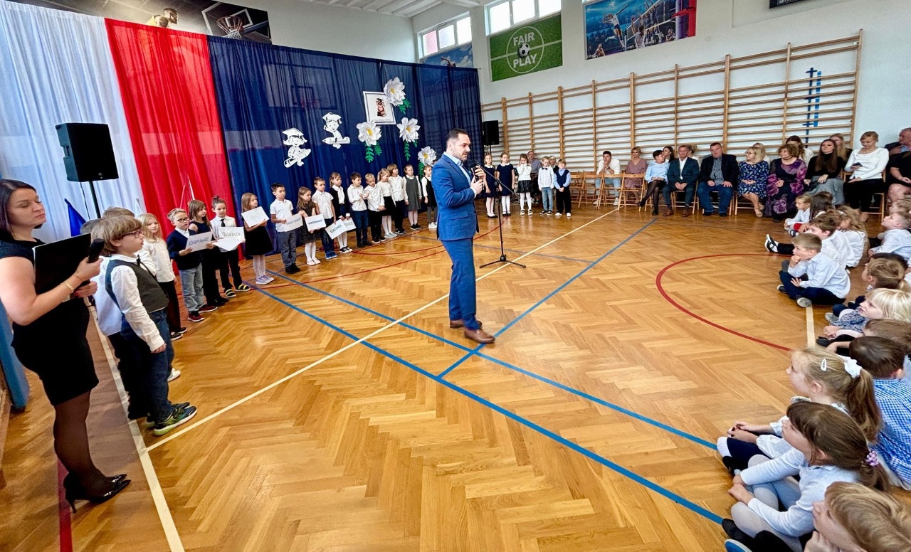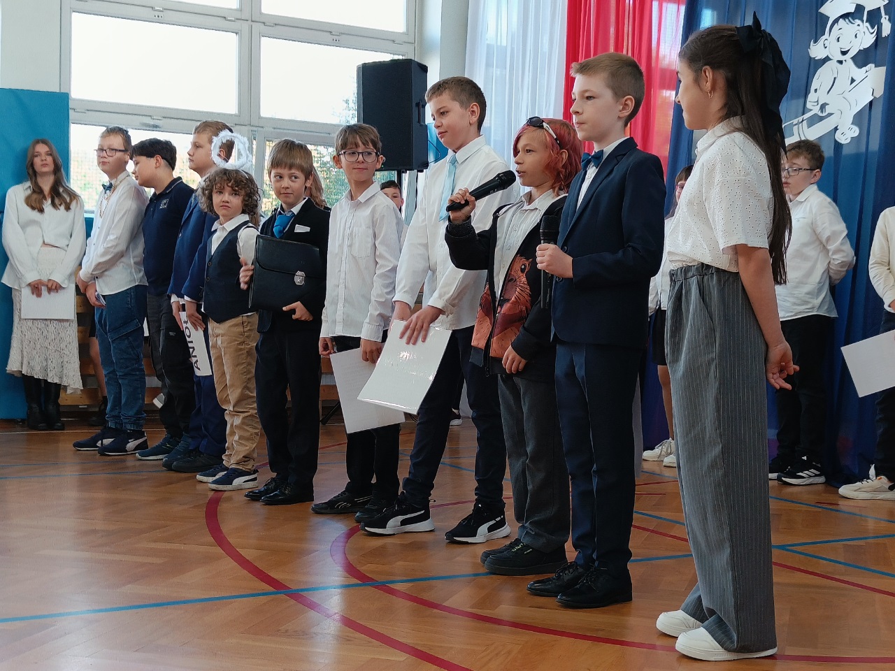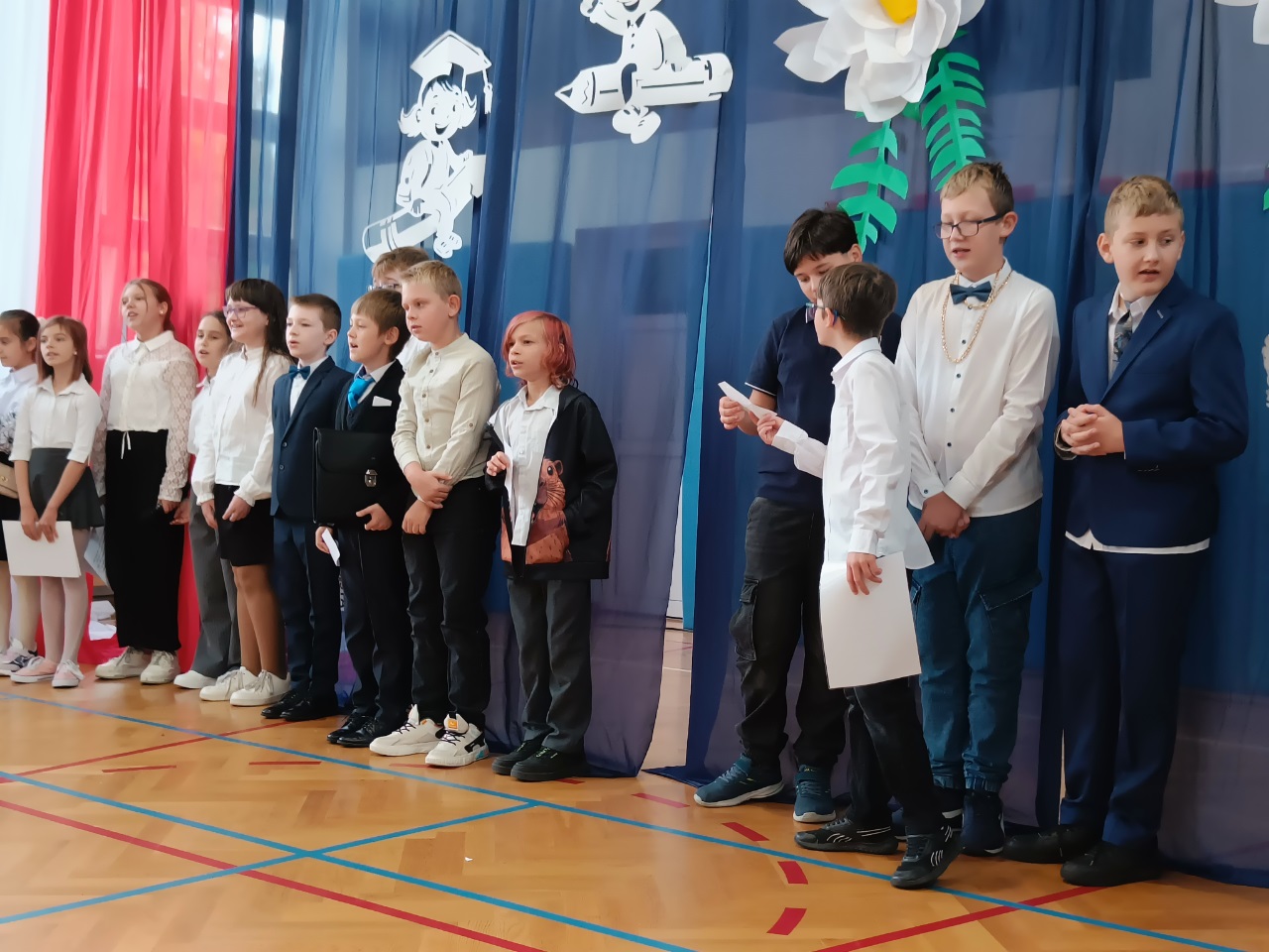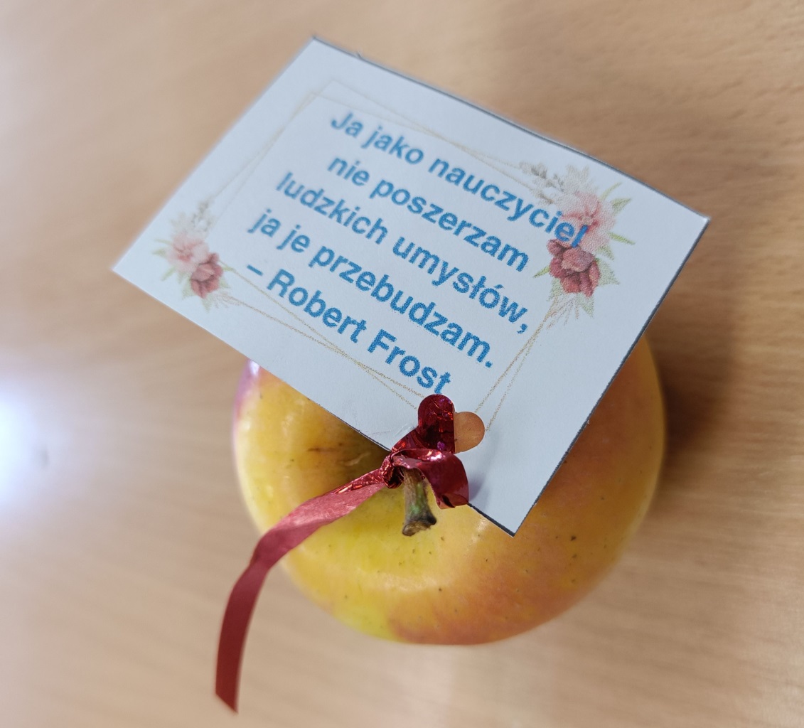 W naszej szkole, z okazji Dnia Nauczyciela odbyły się uroczyste apele. Dla uczniów klas starszych uczniowie klasy 4b pod opieką pani Pauliny Promińskiej, ze wsparciem pani Ewy Gwizdowskiej przygotowali ciekawe przedstawienie z piosenkami, żartami i życzeniami. Dyrekcja szkoły, nauczyciele oraz pracownicy administracji i obsługi otrzymali jabłka z pięknymi sentencjami.
