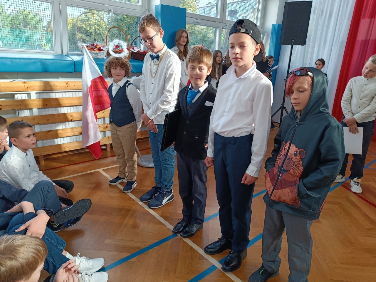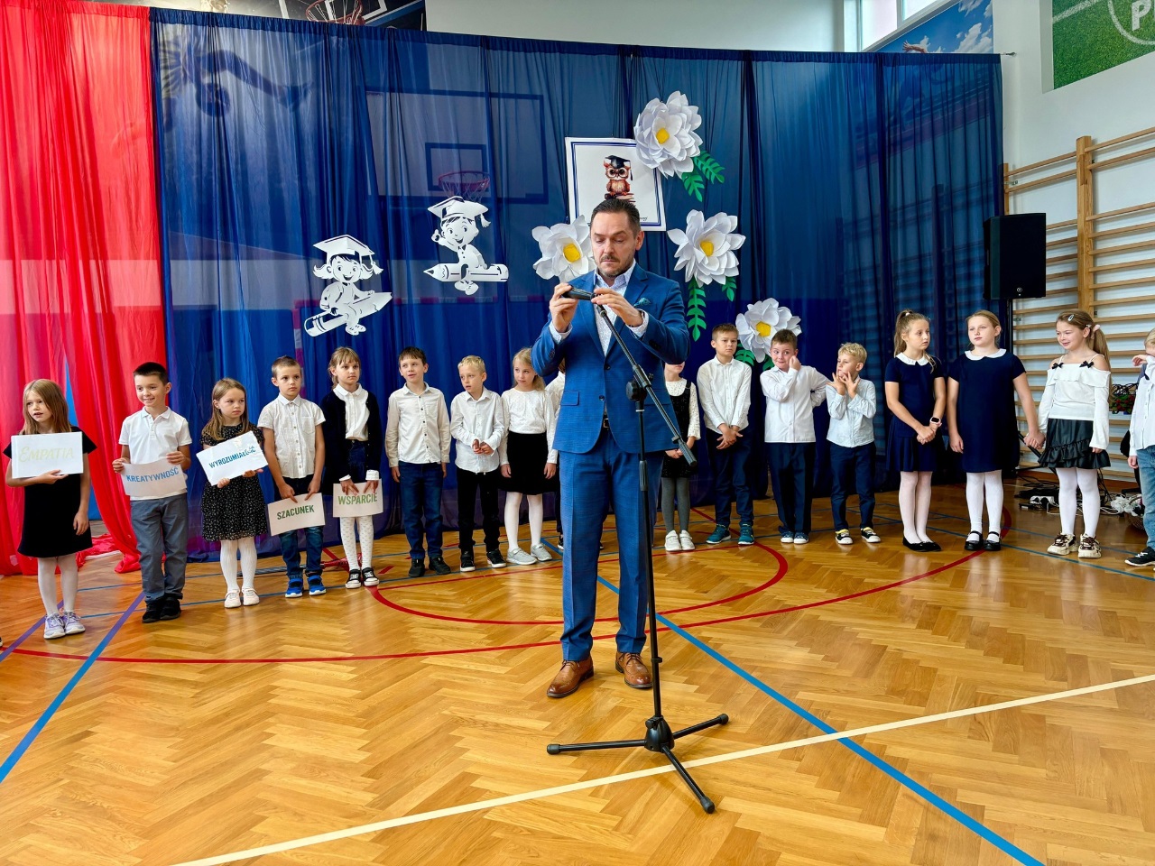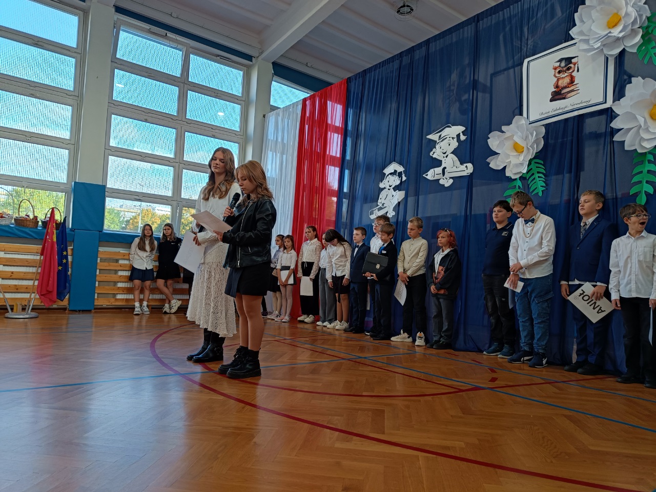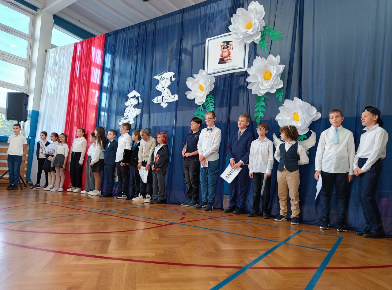 W naszej szkole, z okazji Dnia Nauczyciela odbyły się uroczyste apele. Dla uczniów klas starszych uczniowie klasy 4b pod opieką pani Pauliny Promińskiej, ze wsparciem pani Ewy Gwizdowskiej przygotowali ciekawe przedstawienie z piosenkami, żartami i życzeniami. Dyrekcja szkoły, nauczyciele oraz pracownicy administracji i obsługi otrzymali jabłka z pięknymi sentencjami.
