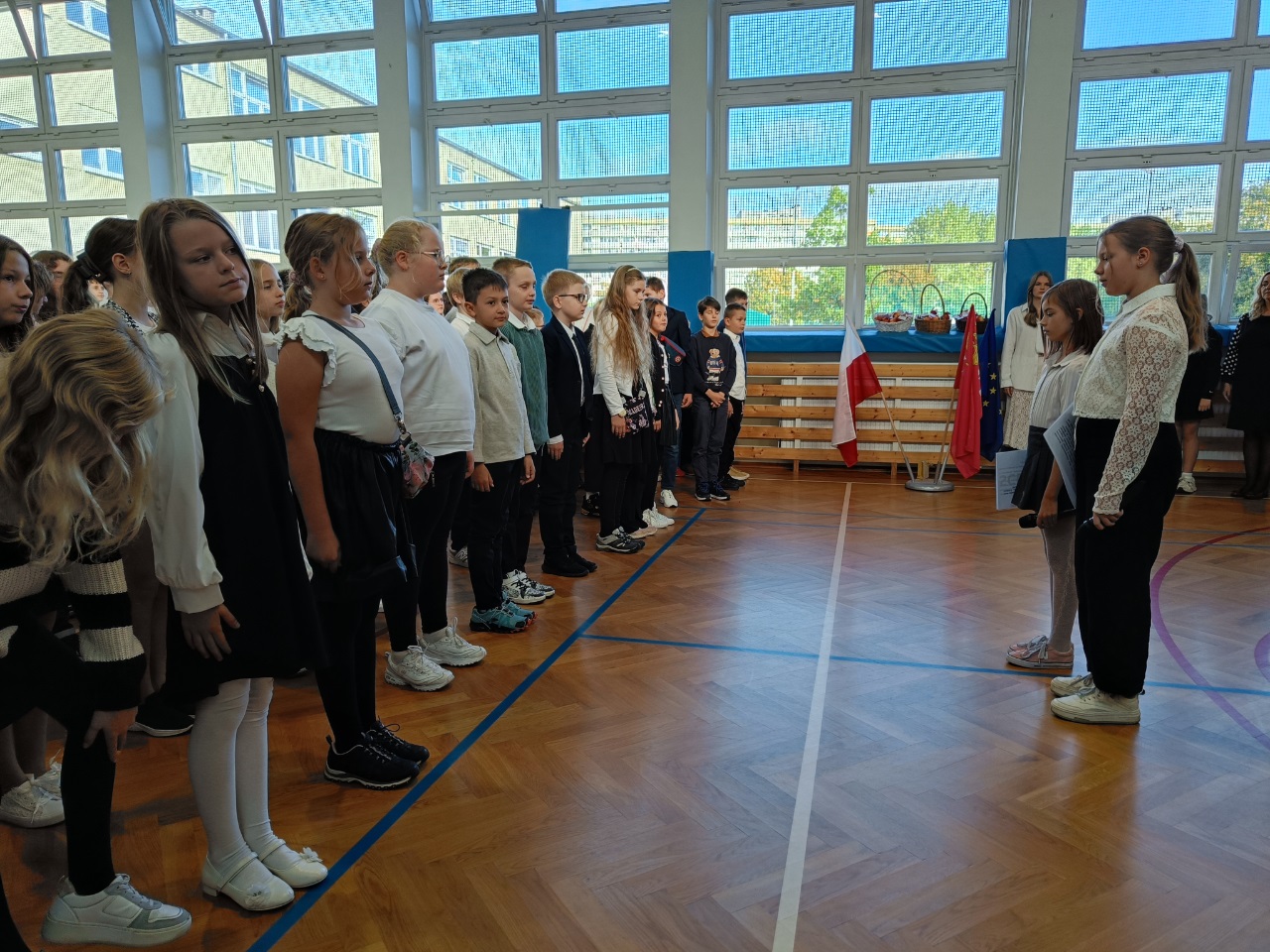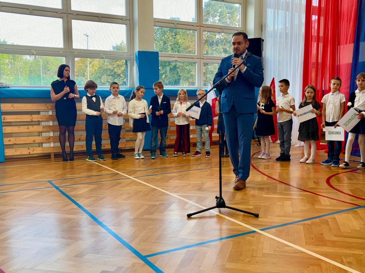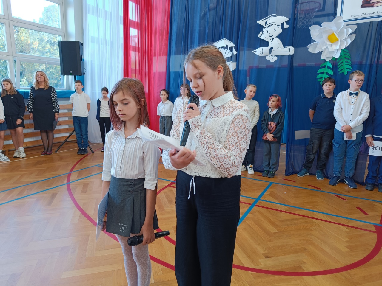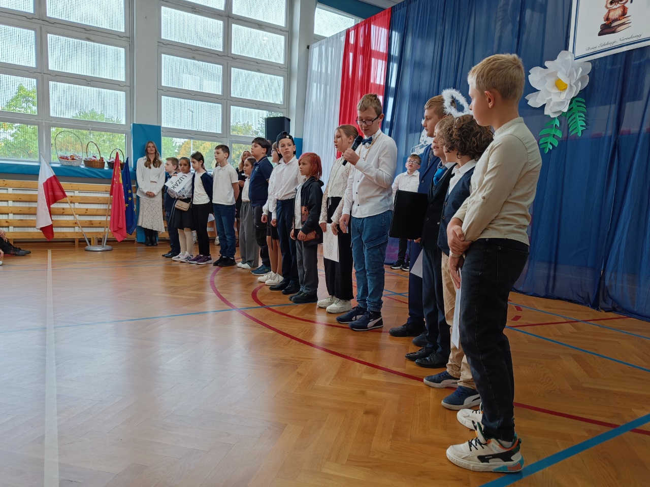 W naszej szkole, z okazji Dnia Nauczyciela odbyły się uroczyste apele. Dla uczniów klas starszych uczniowie klasy 4b pod opieką pani Pauliny Promińskiej, ze wsparciem pani Ewy Gwizdowskiej przygotowali ciekawe przedstawienie z piosenkami, żartami i życzeniami. Dyrekcja szkoły, nauczyciele oraz pracownicy administracji i obsługi otrzymali jabłka z pięknymi sentencjami.