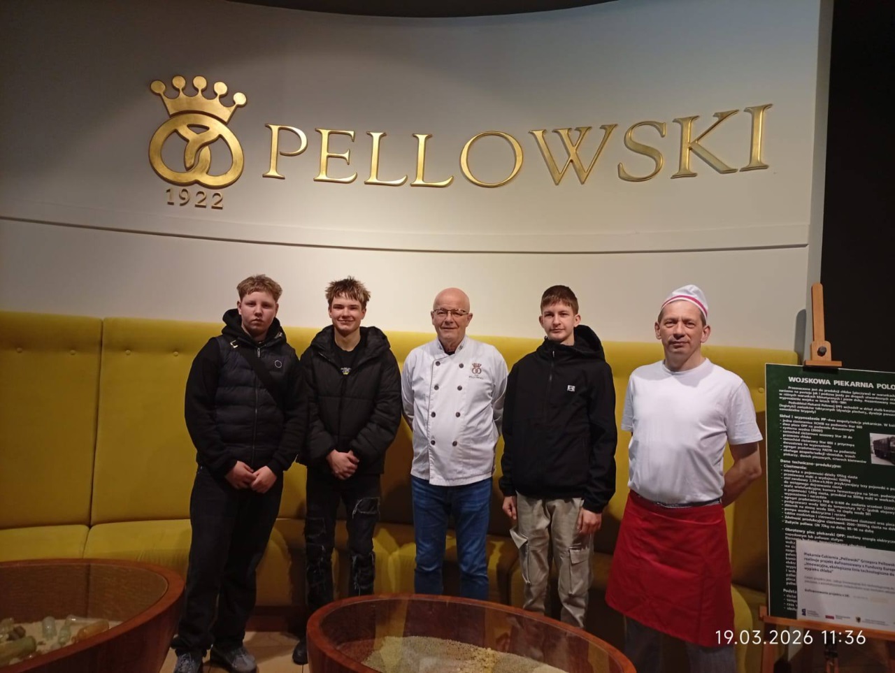 Uczniowie klas 8 wzięli udział w niezwykle inspirującej wycieczce zawodoznawczej do piekarni Pellowski przy ul. Mostowej. To była prawdziwa podróż „od mąki do wypieku” – uczniowie mogli zobaczyć, jak wygląda codzienna praca piekarza i cukiernika, poznać tajniki zawodu oraz przekonać się, ile pasji, precyzji i zaangażowania kryje się za każdym produktem.
