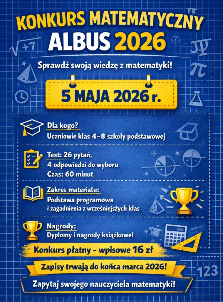 5 maja 2026r. odbędzie się konkurs dla uczniów klas 4-8.