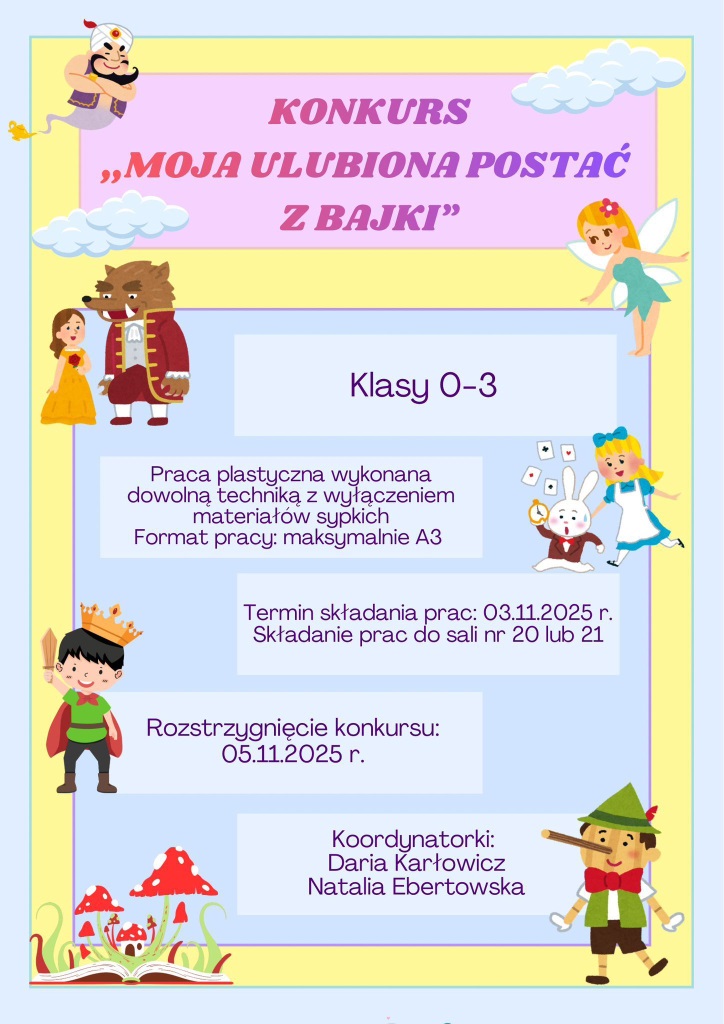 Regulamin konkursu plastycznego „Moja ulubiona postać z bajki”