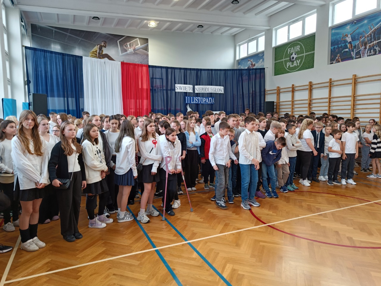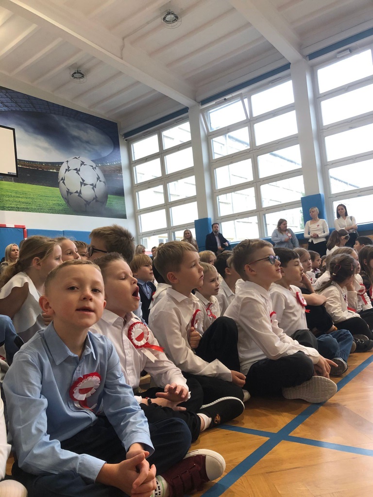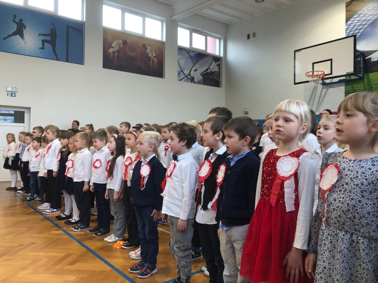 Punktualnie, o godzinie 11.11 wszyscy uczniowie naszej szkoły wraz z dyrekcją i nauczycielami odśpiewali cztery zwrotki hymnu państwowego - “Mazurek Dąbrowskiego” - polska pieśń patriotyczna z 1797 roku, od 26 lutego 1927 oficjalny hymn państwowy Rzeczypospolitej Polskiej.