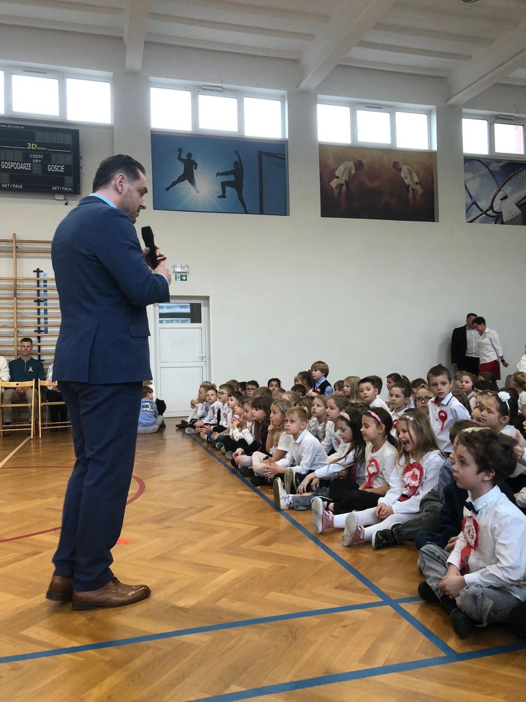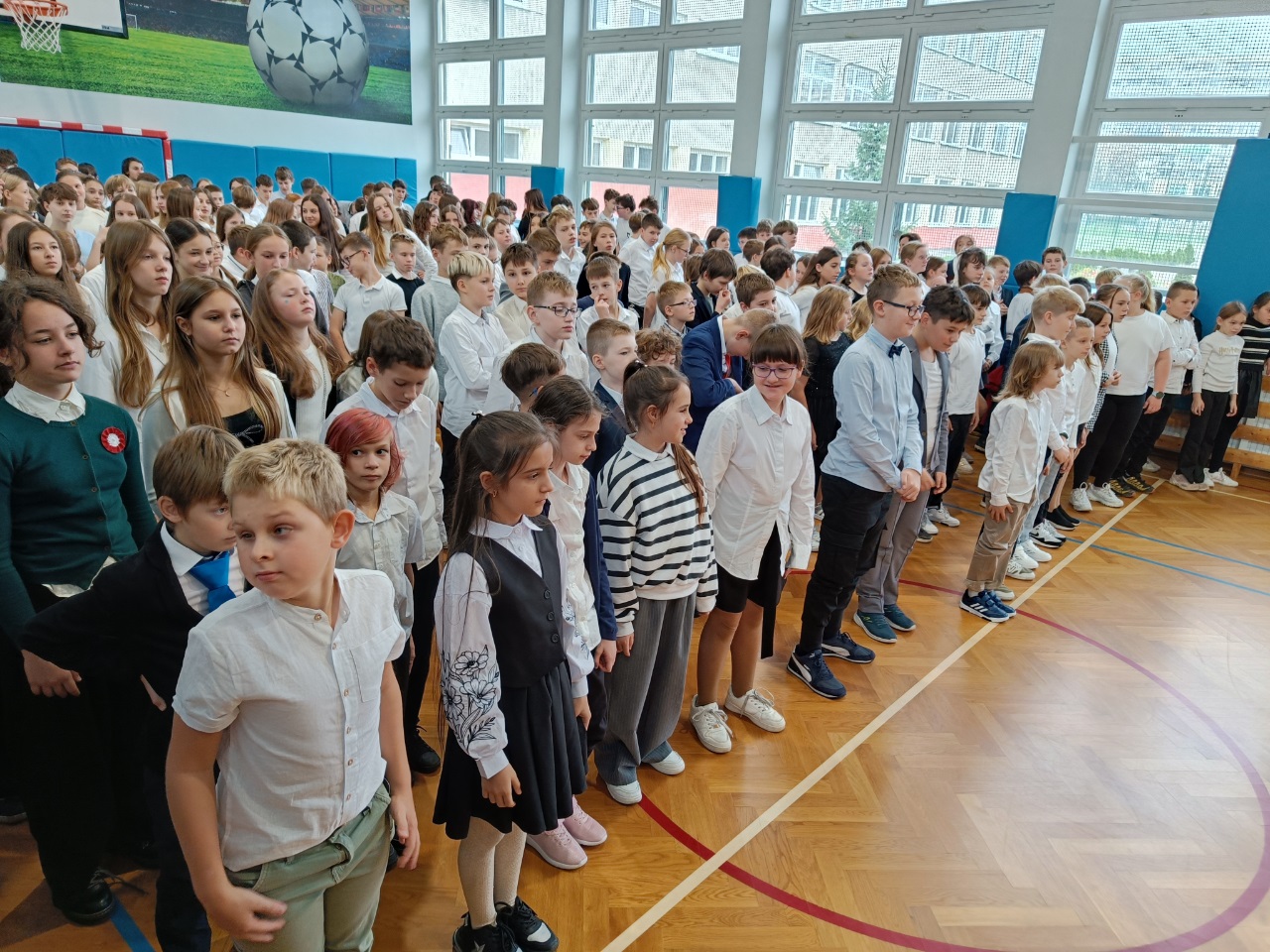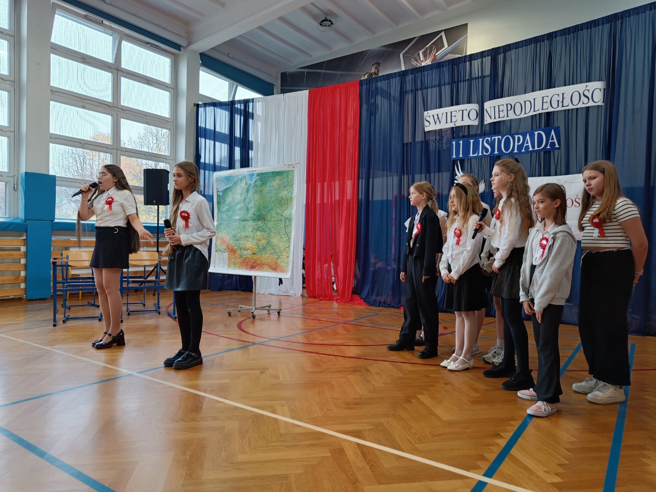 Punktualnie, o godzinie 11.11 wszyscy uczniowie naszej szkoły wraz z dyrekcją i nauczycielami odśpiewali cztery zwrotki hymnu państwowego - “Mazurek Dąbrowskiego” - polska pieśń patriotyczna z 1797 roku, od 26 lutego 1927 oficjalny hymn państwowy Rzeczypospolitej Polskiej.