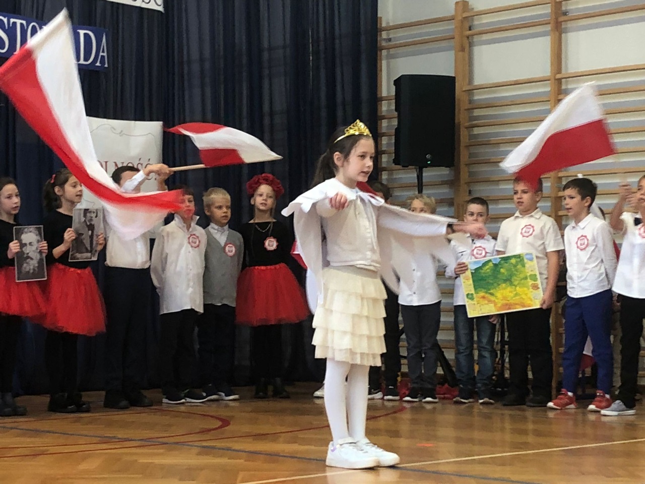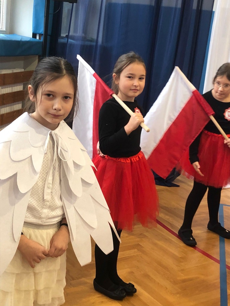 Uczniowie klasy 2a przygotowali wyjątkowy, pełen uroku i patriotyzmu apel. Najmłodsi uczniowie w piękny sposób uczcili pamięć o tych, którzy walczyli o wolność naszej Ojczyzny. Z ogromnym zaangażowaniem recytowali wiersze, śpiewali pieśni patriotyczne i z dumą prezentowali barwy narodowe. Ich występ był wzruszającą lekcją miłości do Polski i radości z życia w wolnym kraju. Dziękujemy uczniom klasy 2a oraz wychowawczyni p. Grażynie Sieniawskiej za przygotowanie tej pięknej uroczystości, która poruszyła serca wszystkich obecnych.