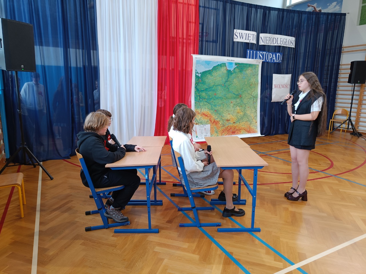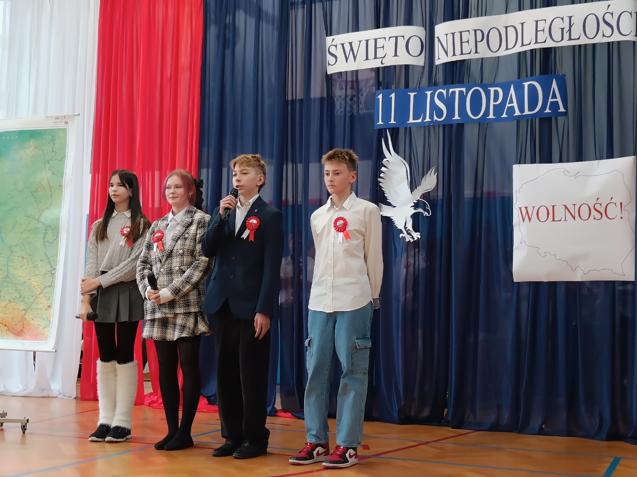 Piątek, 7 listopada 2025r. w naszej szkole był bardzo uroczystym dniem. Uczniowie wzięli udział w uroczystych, pięknie przygotowanych apelach z okazji zbliżającej się rocznicy odzyskania niepodległości przez Polskę.