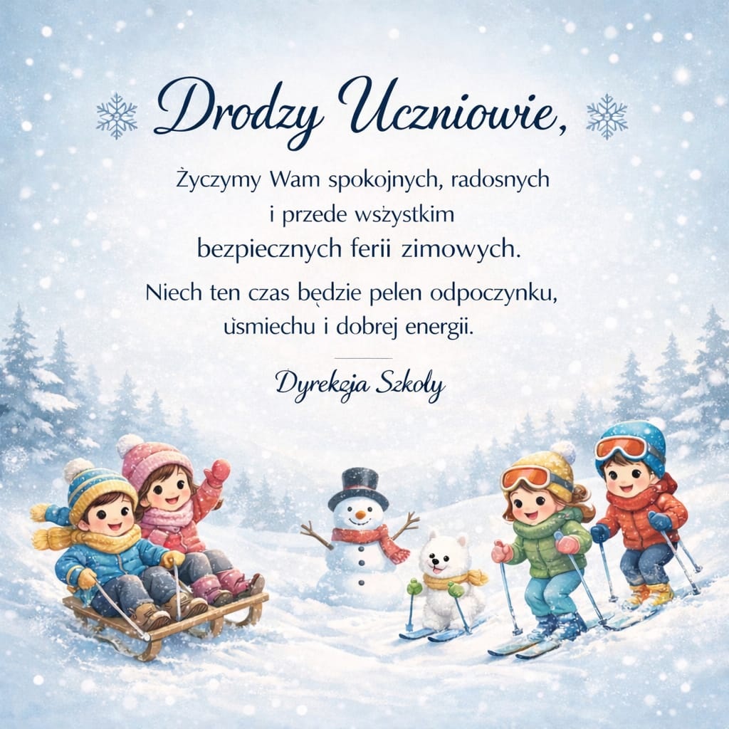 Życzymy Wam spokojnych, radosnych i przede wszystkim bezpiecznych ferii zimowych.