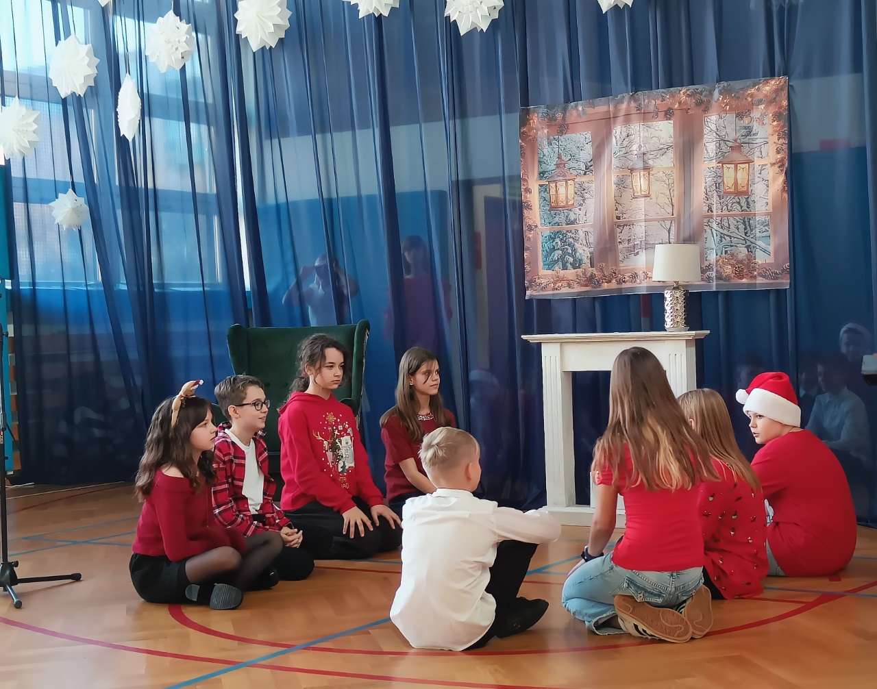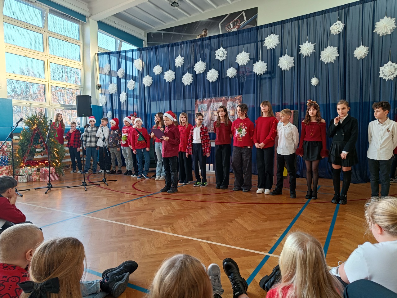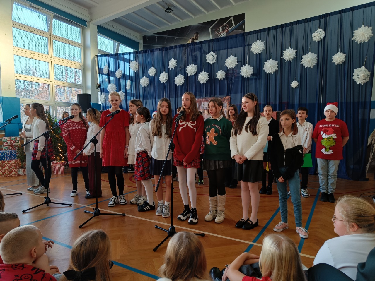 19 grudnia 2025r. uczniowie klas 1-3 obejrzeli uczniów klasy 3b, którzy z wielkim zaangażowaniem i sercem przygotowali piękne przedstawienie pełne ciepła, kolęd i wzruszeń. Uczniowie klas 4–8 wzięli udział w przygotowanym przez uczniów klasy 5b poruszające przedstawienie. Całość pięknie uświetnił występ szkolnego chóru.