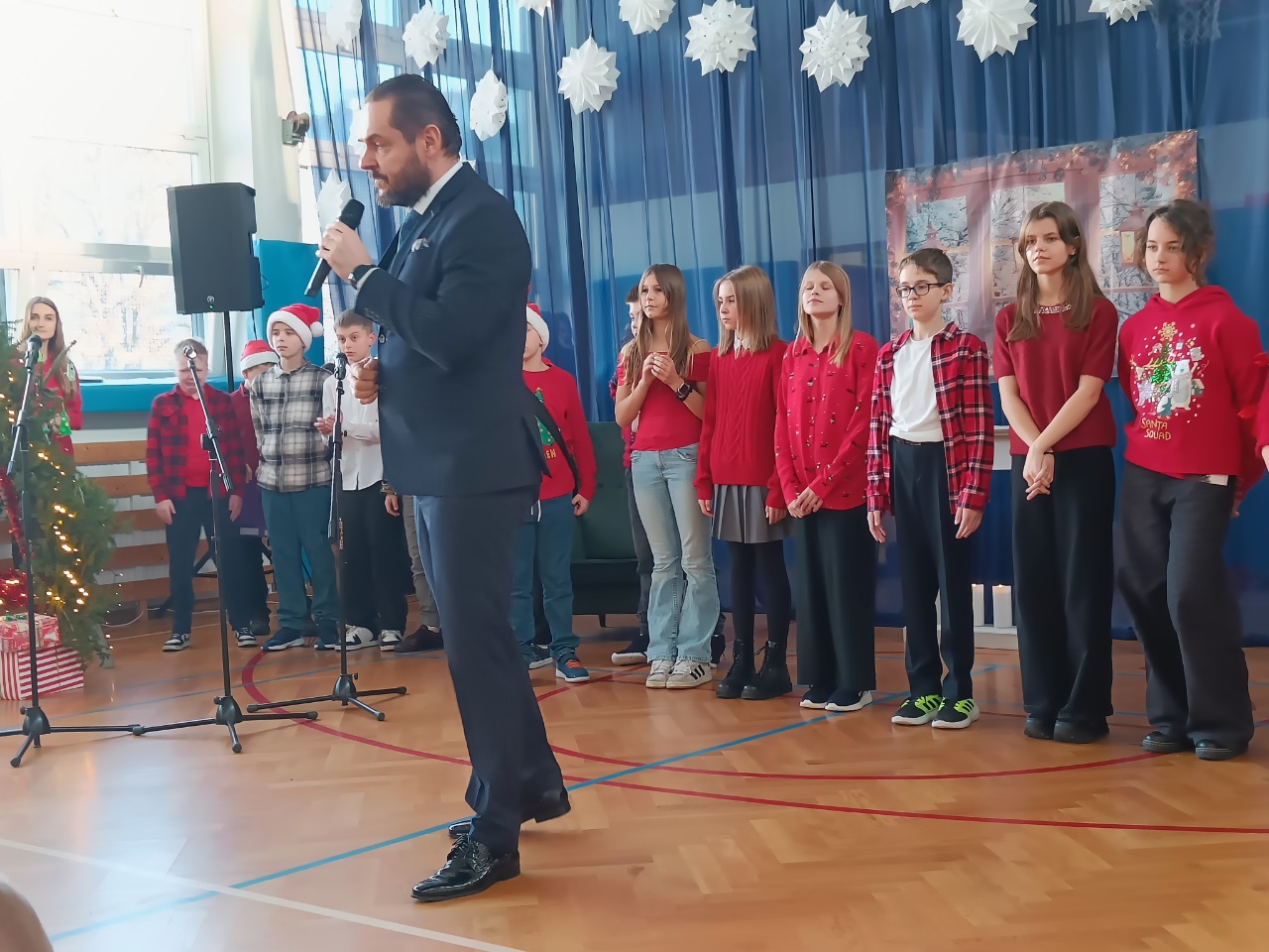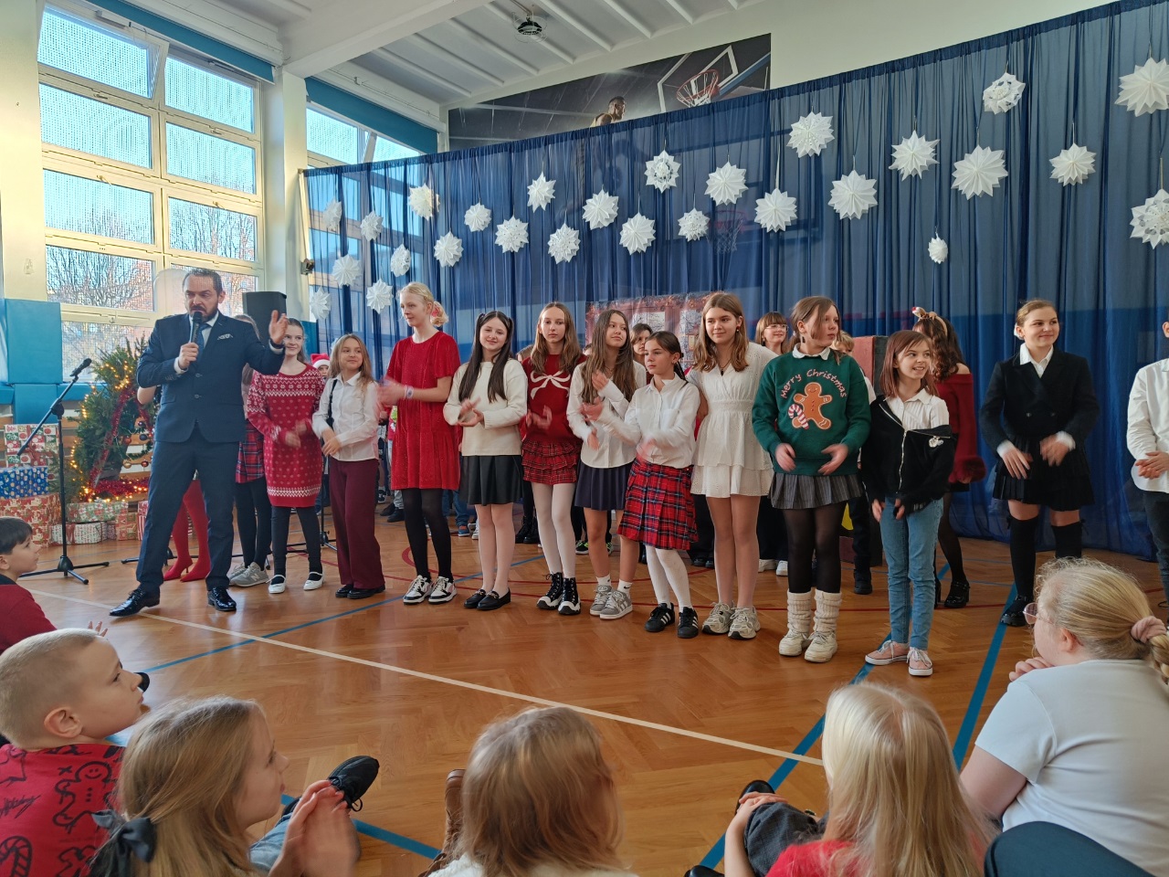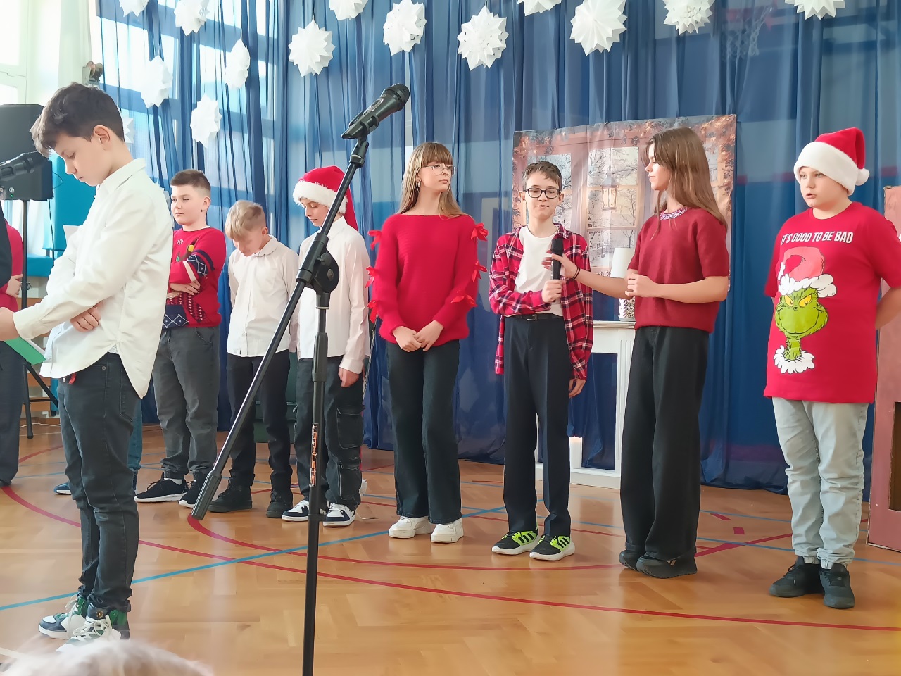 19 grudnia 2025r. uczniowie klas 1-3 obejrzeli uczniów klasy 3b, którzy z wielkim zaangażowaniem i sercem przygotowali piękne przedstawienie pełne ciepła, kolęd i wzruszeń. Uczniowie klas 4–8 wzięli udział w przygotowanym przez uczniów klasy 5b poruszające przedstawienie. Całość pięknie uświetnił występ szkolnego chóru.