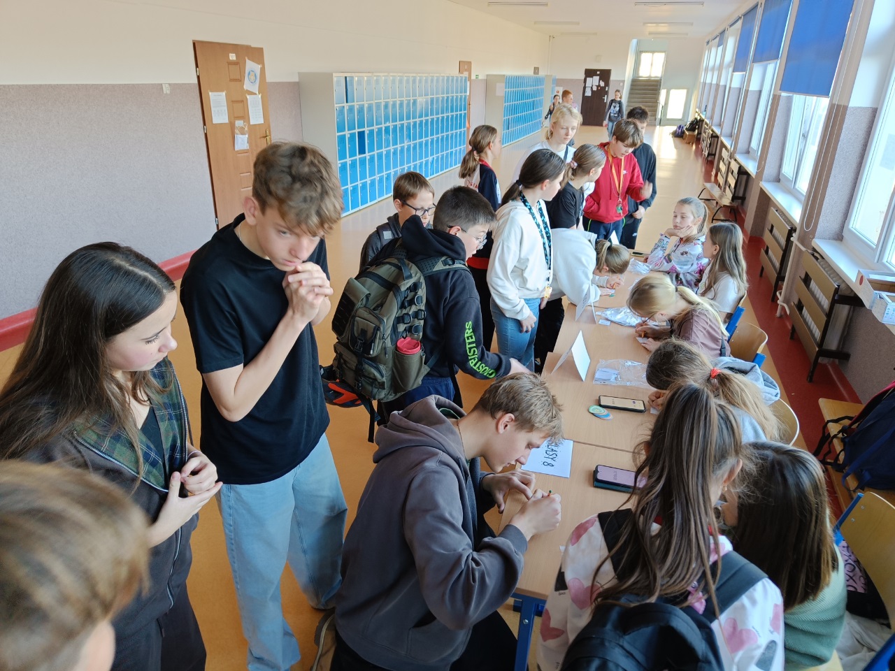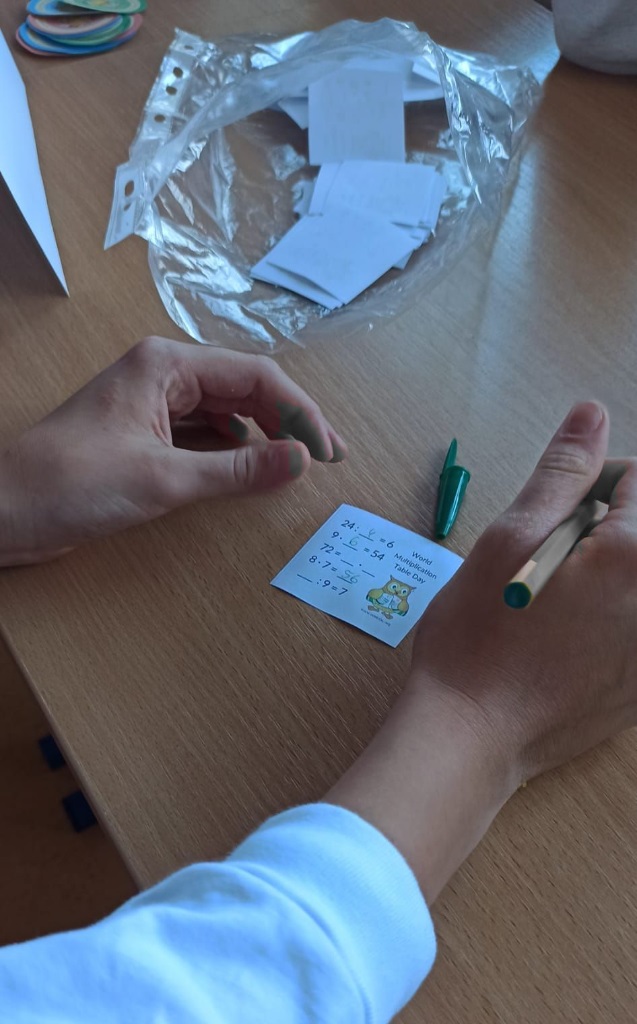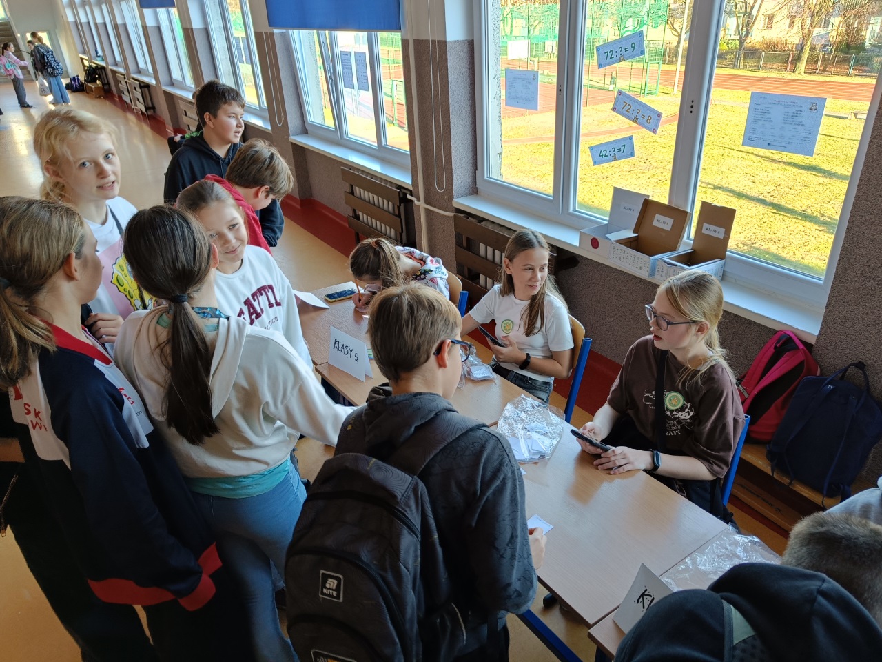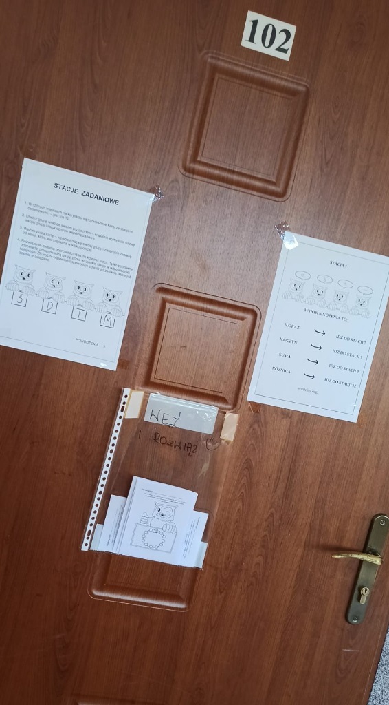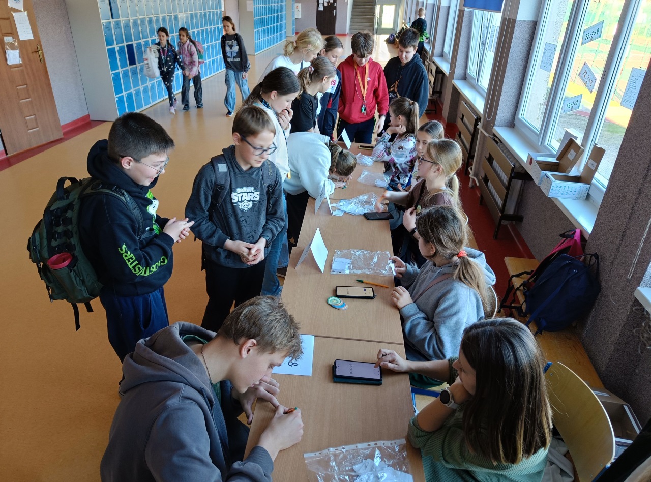 W tym tygodniu był u nas w szkole Tydzień z Tabliczką Mnożenia. Na uczniów klas 4–8 codziennie czekały nowe matematyczne wyzwania, rozmieszczone na korytarzach I i II piętra. Poniedziałek – środa – zadania indywidualne, a w czwartek – zabawa grupowa „Stacje zadaniowe” i test z tabliczki mnożenia na czas.