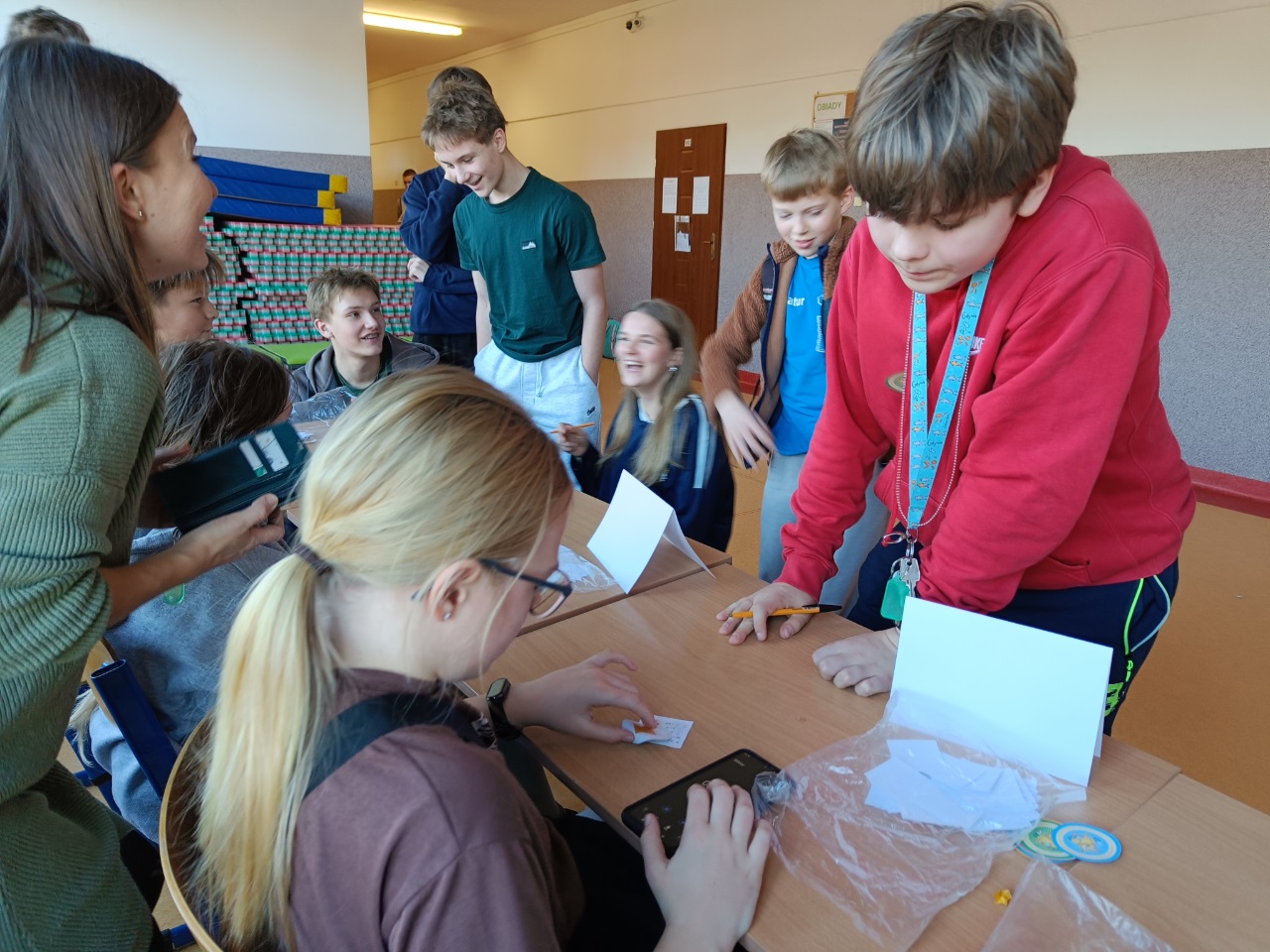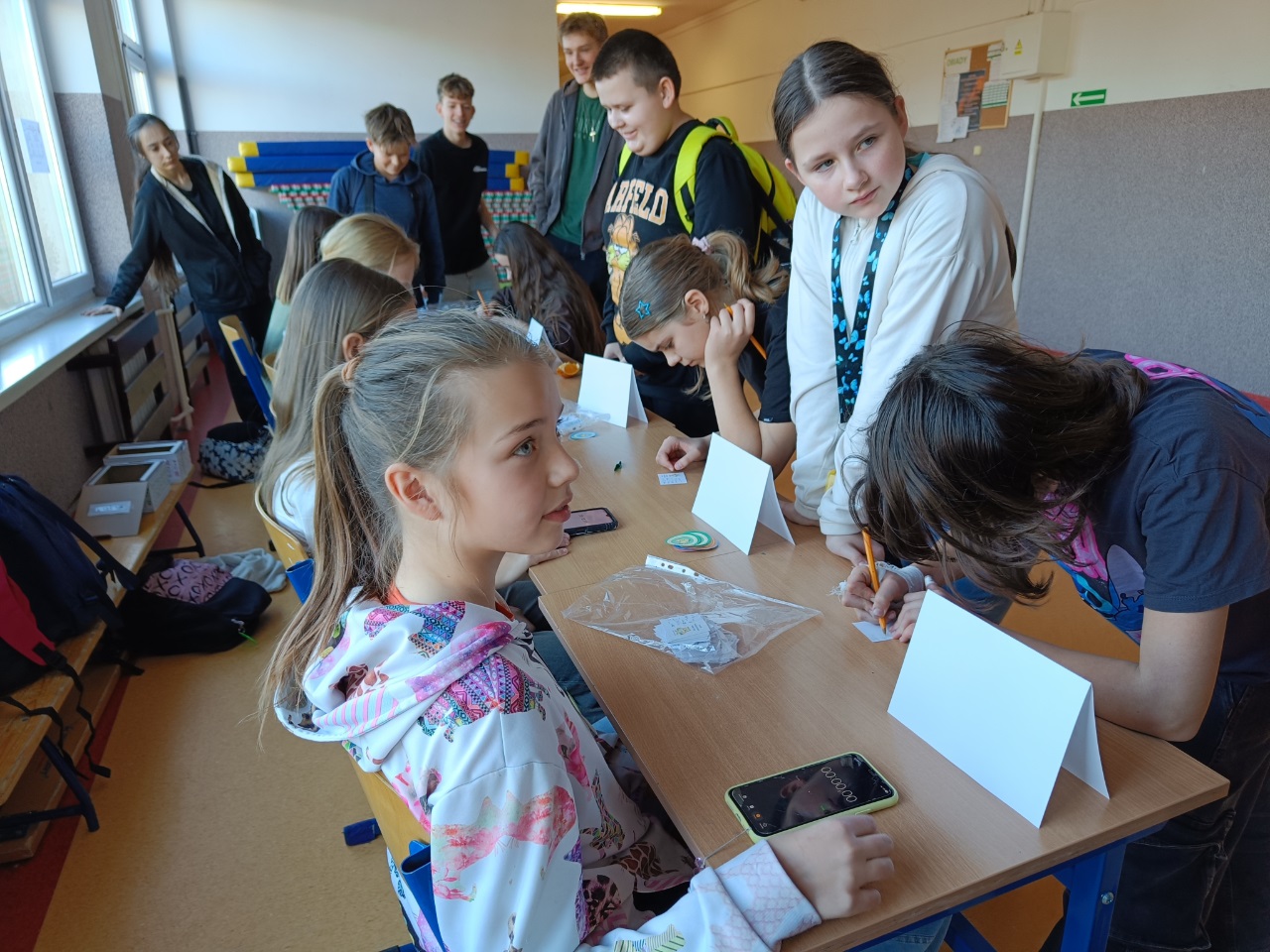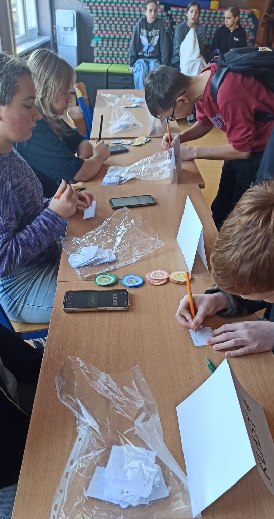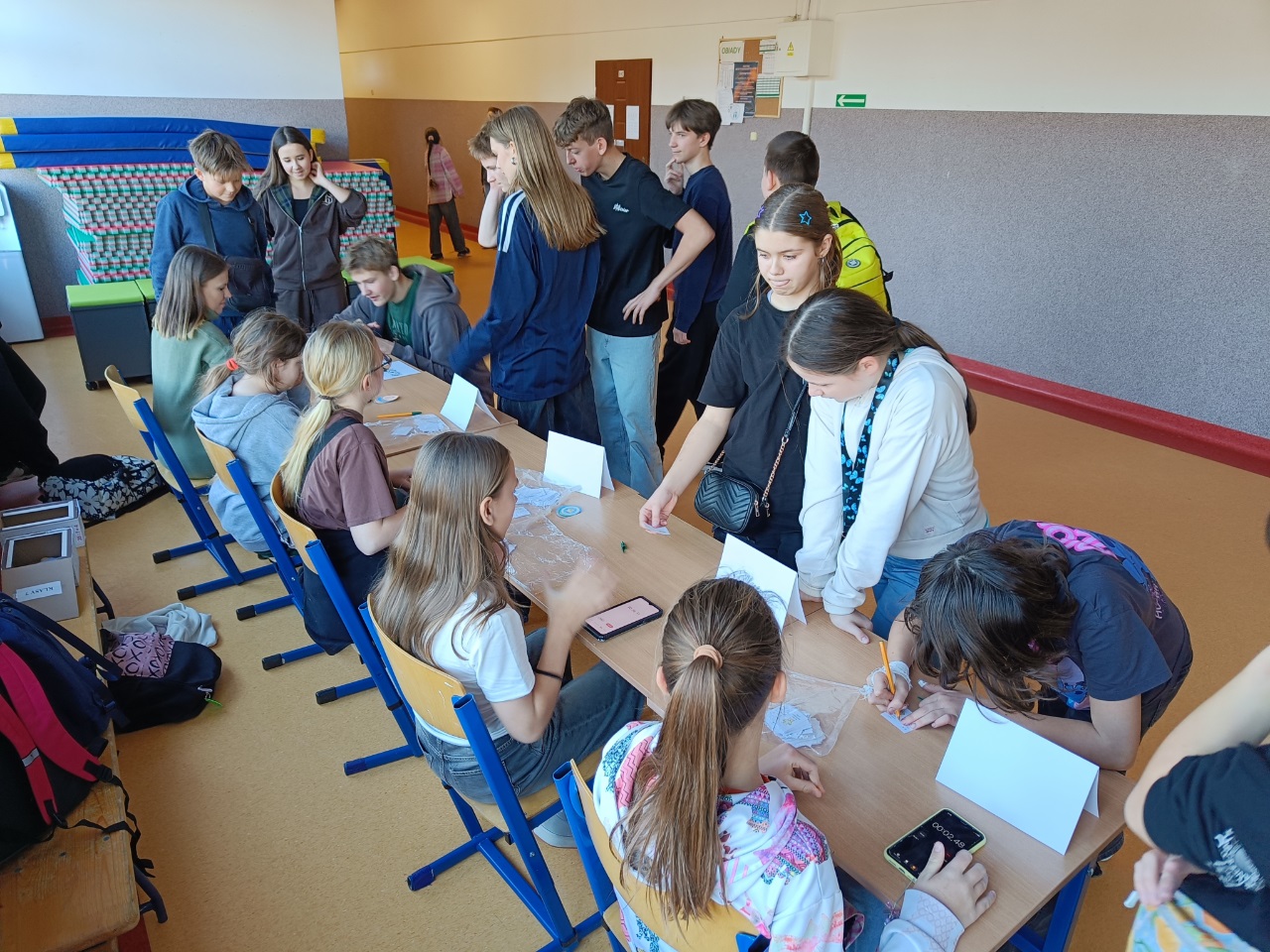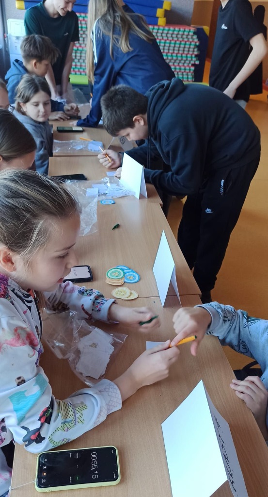 W tym tygodniu był u nas w szkole Tydzień z Tabliczką Mnożenia. Na uczniów klas 4–8 codziennie czekały nowe matematyczne wyzwania, rozmieszczone na korytarzach I i II piętra. Poniedziałek – środa – zadania indywidualne, a w czwartek – zabawa grupowa „Stacje zadaniowe” i test z tabliczki mnożenia na czas.